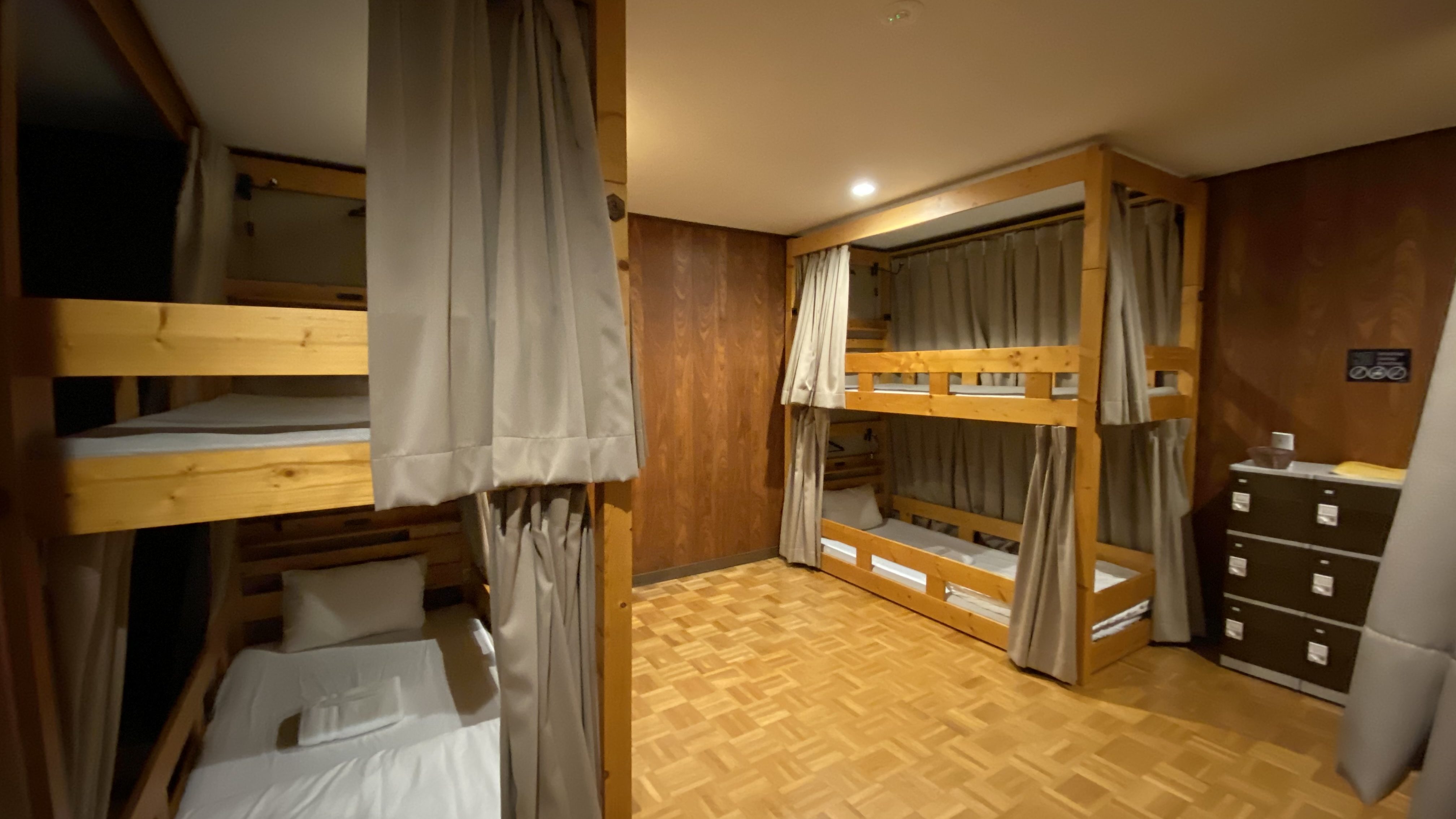 もともと1階がクリニック(診療所)で、2階が院長先生の住居だっただけあって、ベッドを置くスペースには事欠かない。僕が滞在した部屋は二段ベッドが3台あったので6人宿泊できる。(パンフレットによると4台のベッドがある事になっているのでコロナ対応かも知れない)。