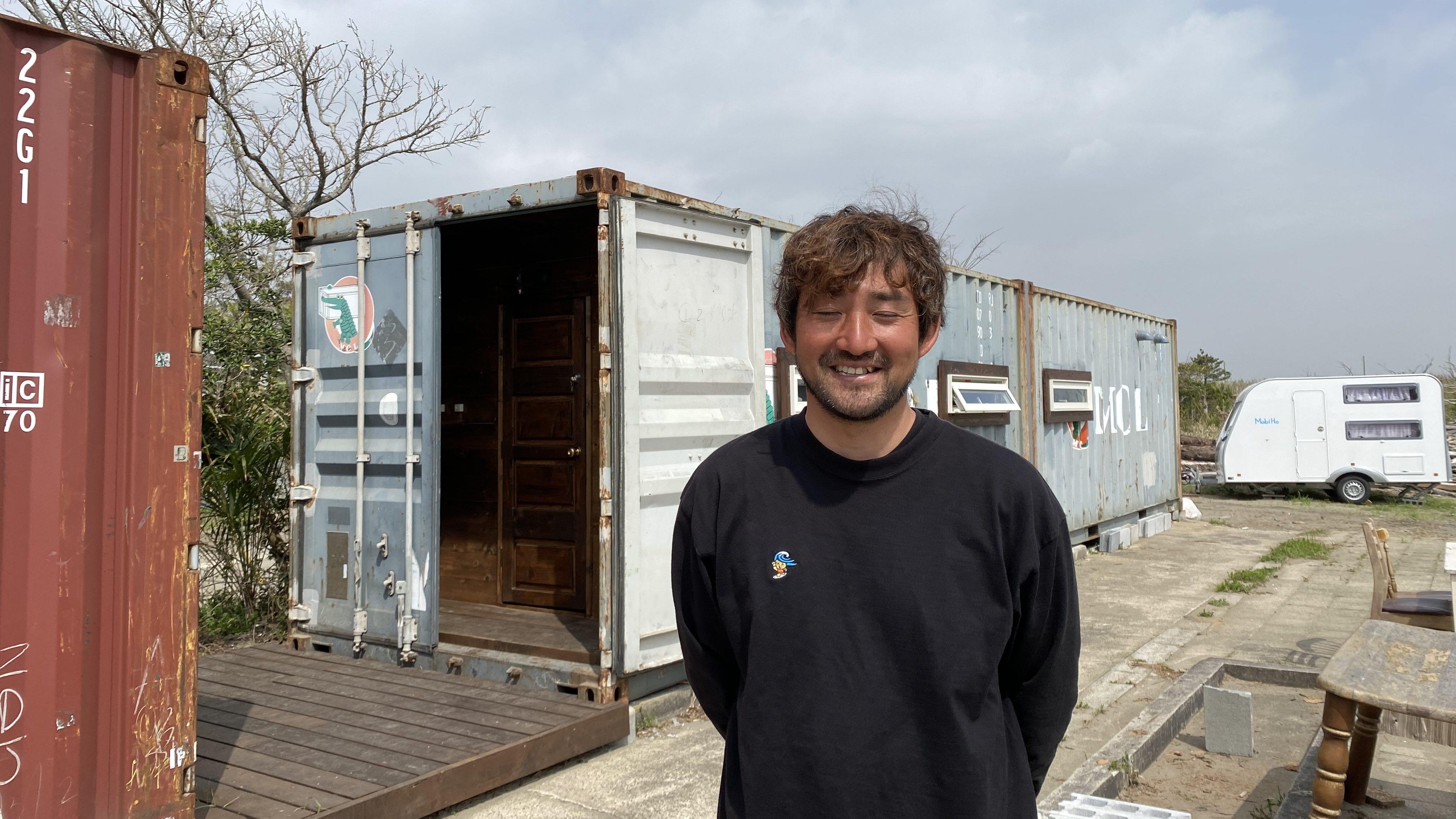 「ホビモ」というサービスは、キャンピングカーの「モビホ」(紛らわしい名前ですが…)を空き地などに設置したり、空き家をリノベーションして宿泊施設として稼働。その日の波のコンディションで入る海を決めるサーファーたちが利用しやすいように海のすぐ近くにそうした宿泊施設を飯岡、旭、作田、白子、一宮、夷隅、部原などに10か所近く用意してあるのだという。