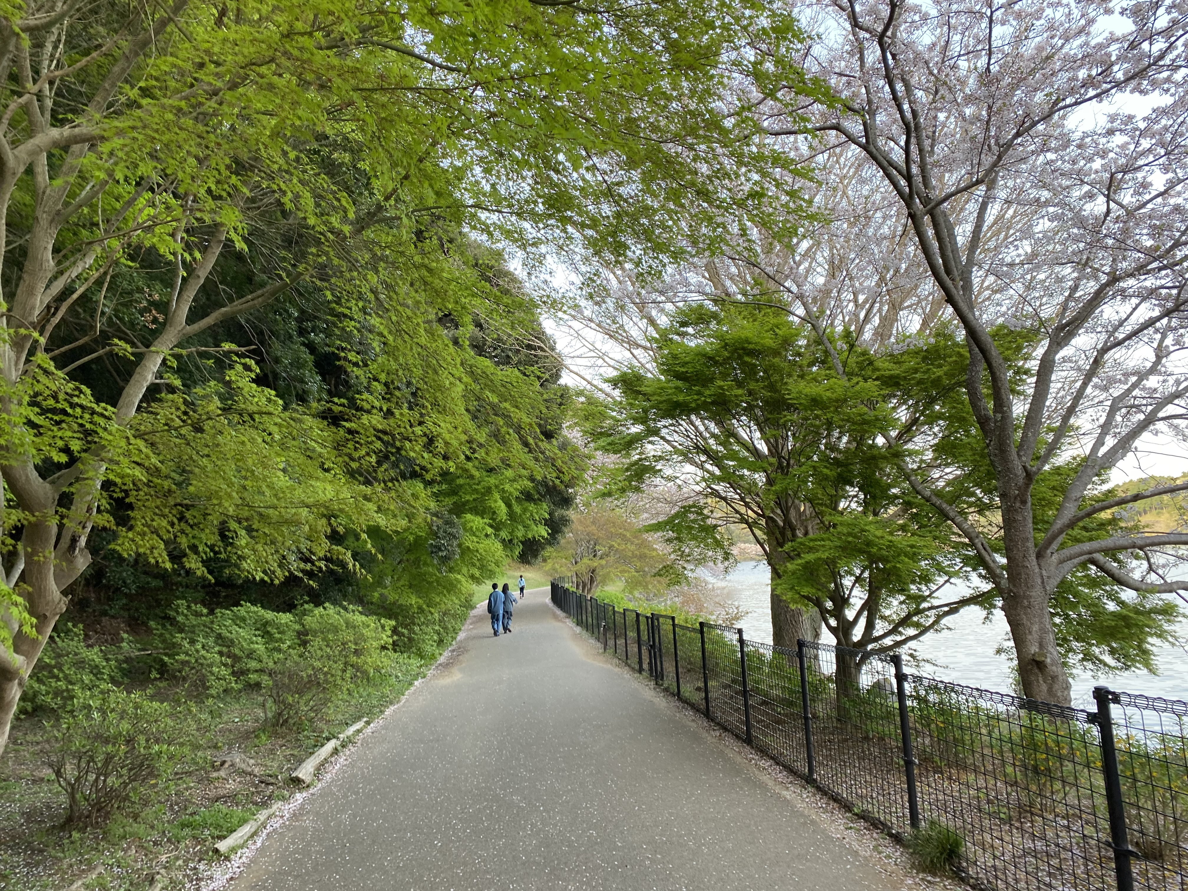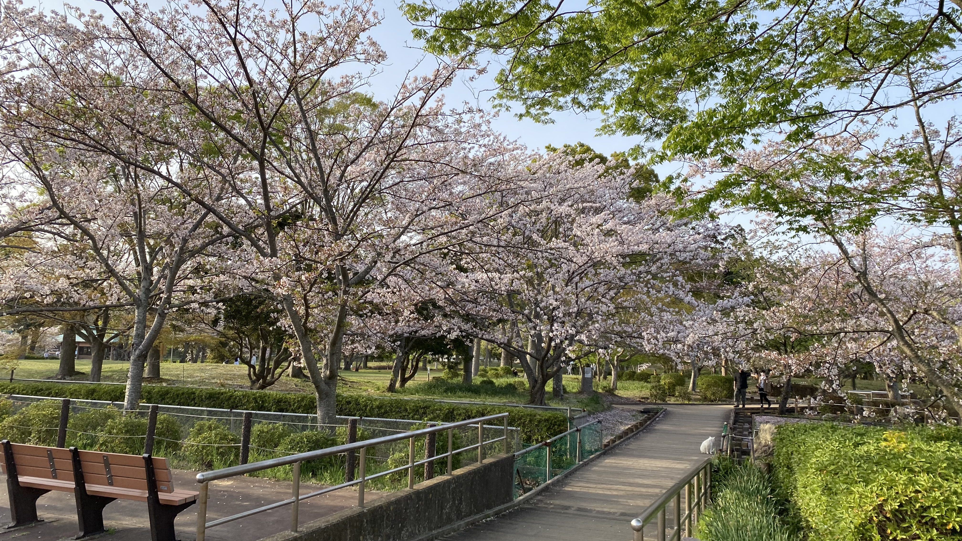この日は、桜も満開近くきれいに咲いている状態。本来であれば花見に興じる人たちが多く繰り出して宴会をしているであろう袖ヶ浦公園も散歩をする人々がちらほらいるくらいの状態。