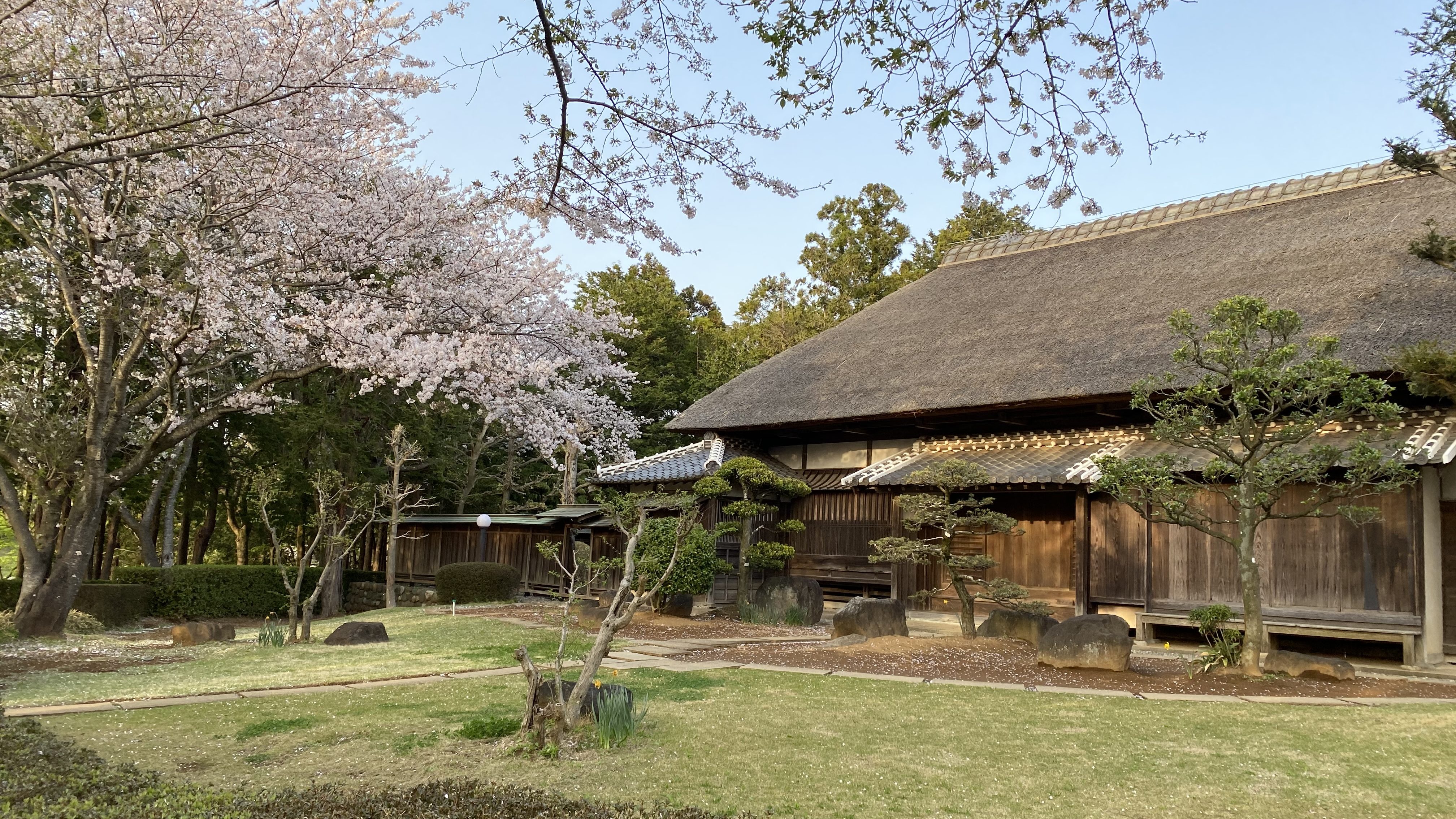 公園を周回できる散策道を歩いていくと少し小高い丘に登るようになります。丘の上には、立派な古民家があるのですが、この古民家がまた素敵。