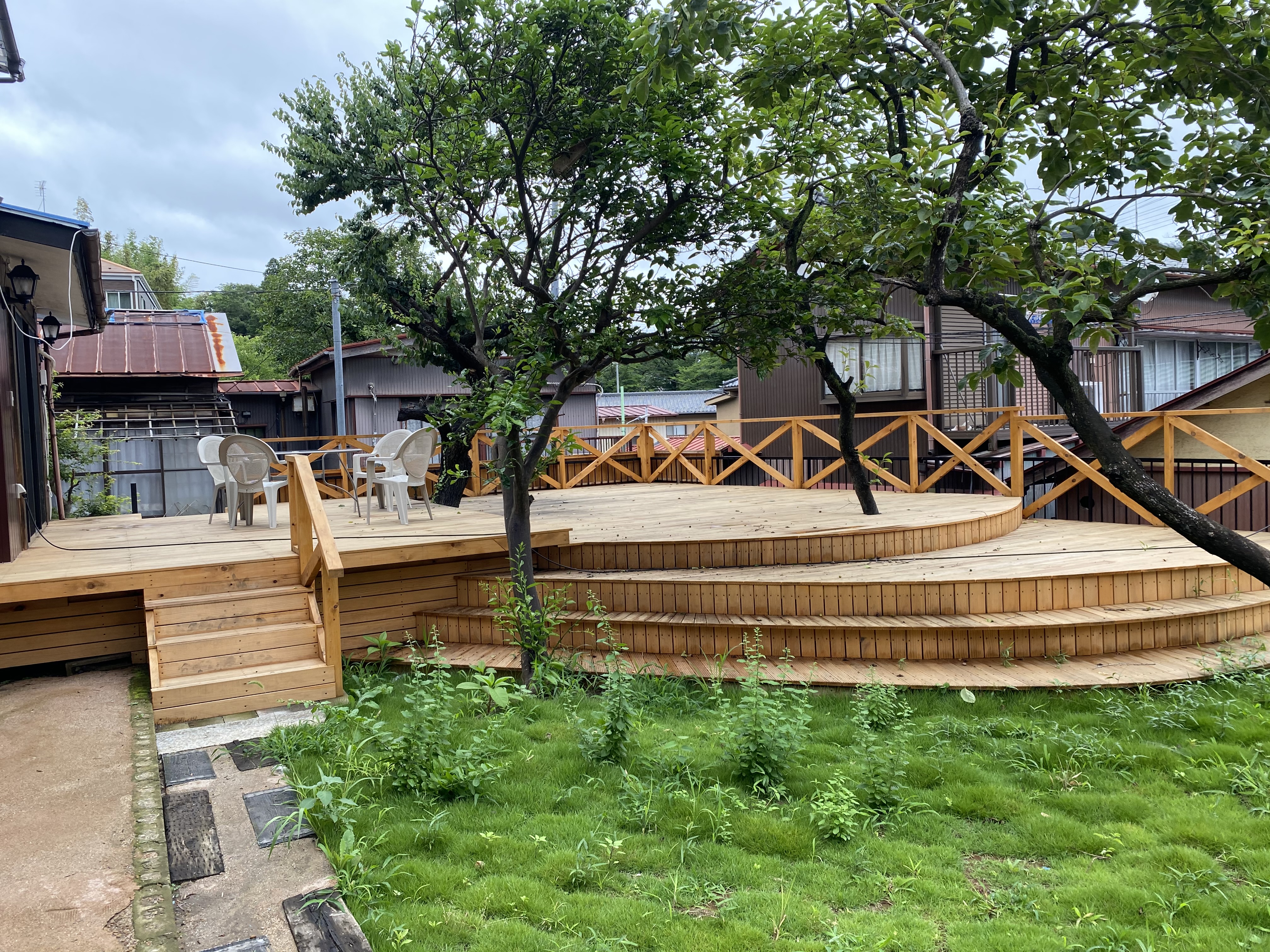 広いウッドデッキを持つシェアスペース「浪漫館」&シェアハウス「浪漫邸」