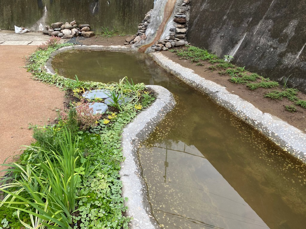 同社では、この傾斜を利用して雨水を住宅街を流れる小川に変えている。各戸を縫うように流れていく小川はエリアの一角で小さな池に合流する。ここはビオトープにする予定だという。