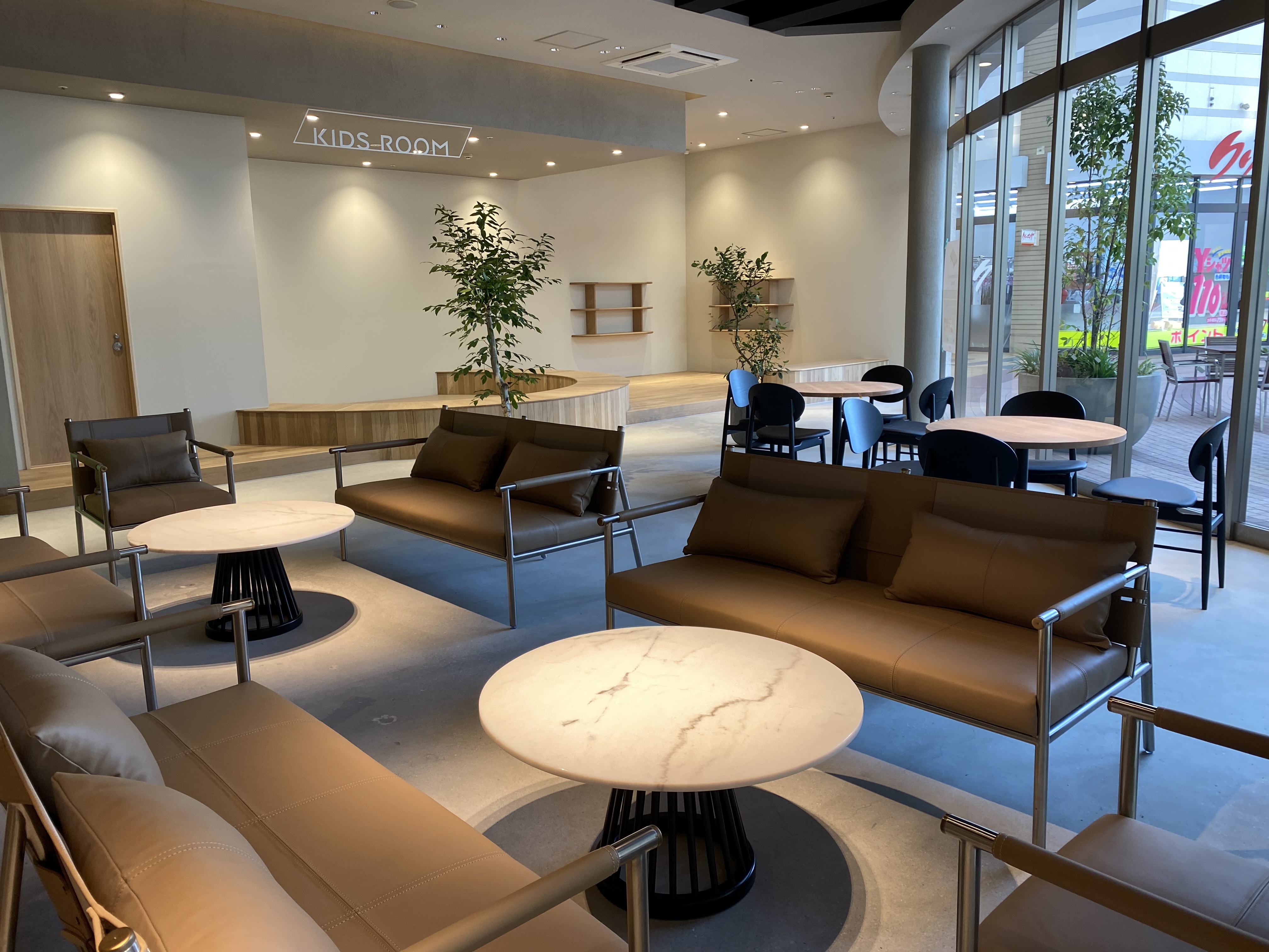 また、レストランスペースには広々としたキッズルームも配備。子ども達が靴を脱いで遊べるクッションフロアの広場にテーブル席を併設。周辺住民に多い子育て世代向けに配慮されている。