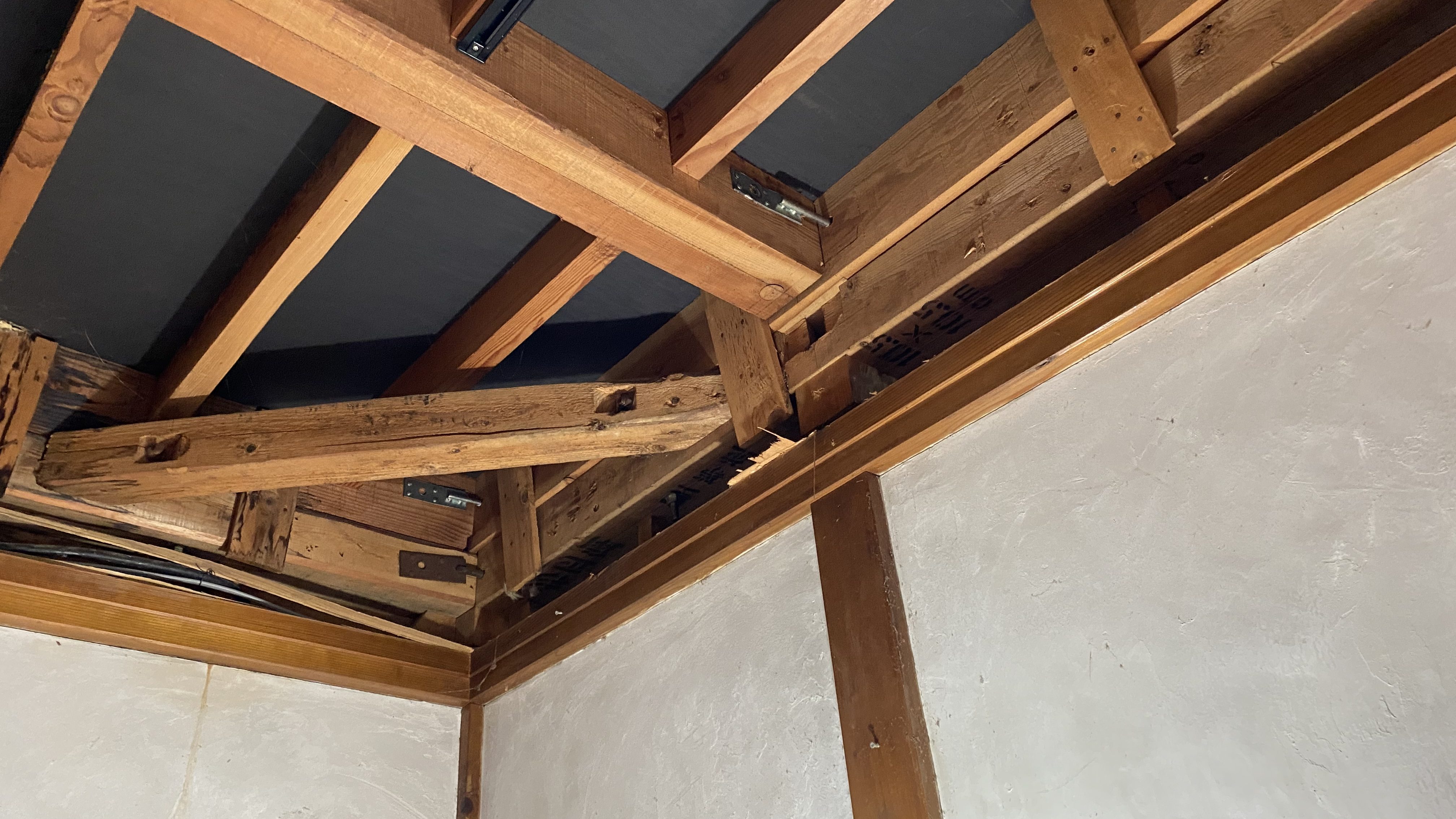 屋根裏には特に断熱など敷かれておらず、物件全体もはいた息が白くなるほど寒かったです(訪問したのは、22年2月20日)。それでも、友人と2時間程度コーヒーを飲みながら会話が弾んだので「暖房が無くても何とかなるものなのだな」と感じたのも新しい発見だった。