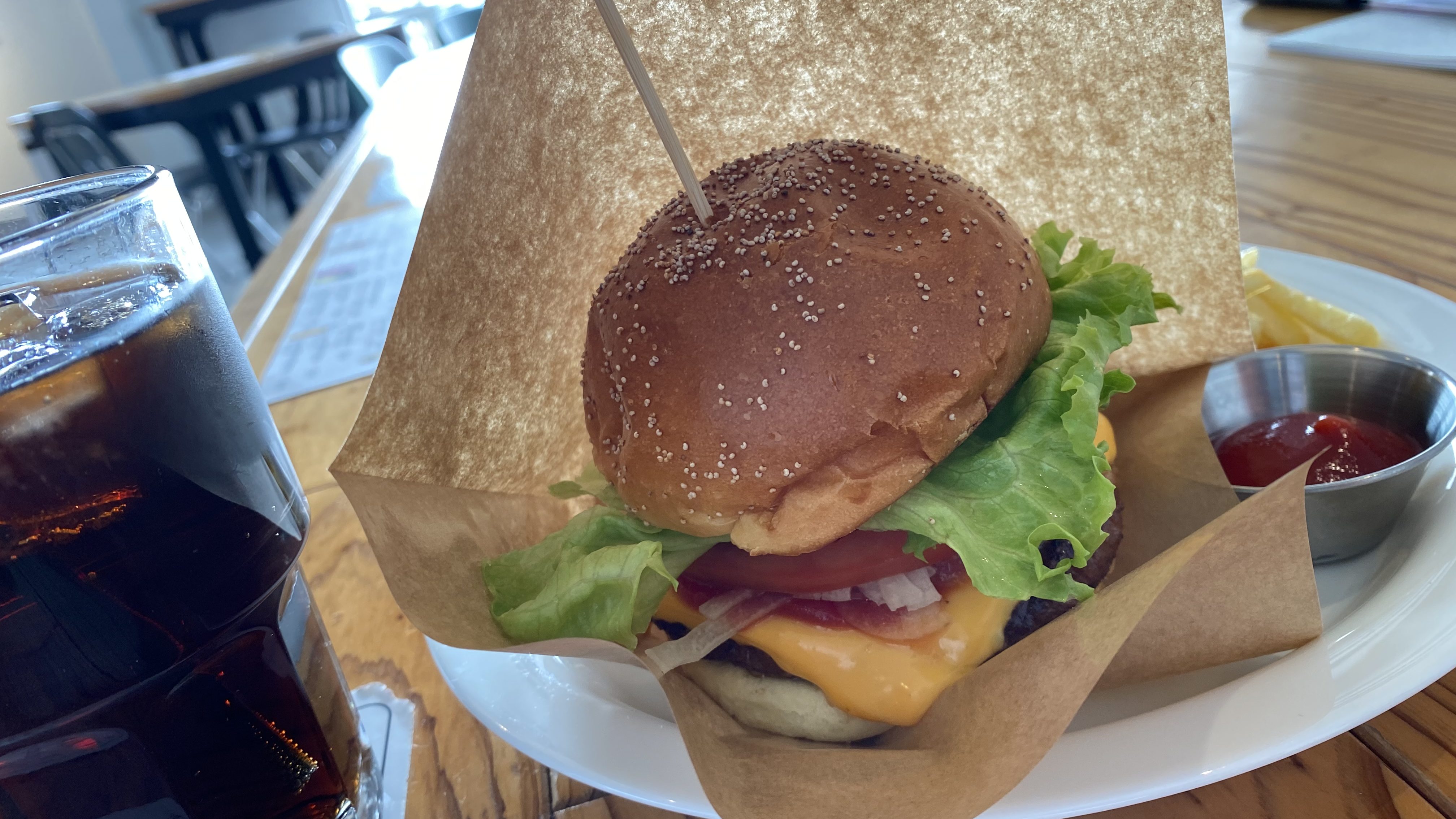 今回は、取材前にハンバーガーとコーラを注文。