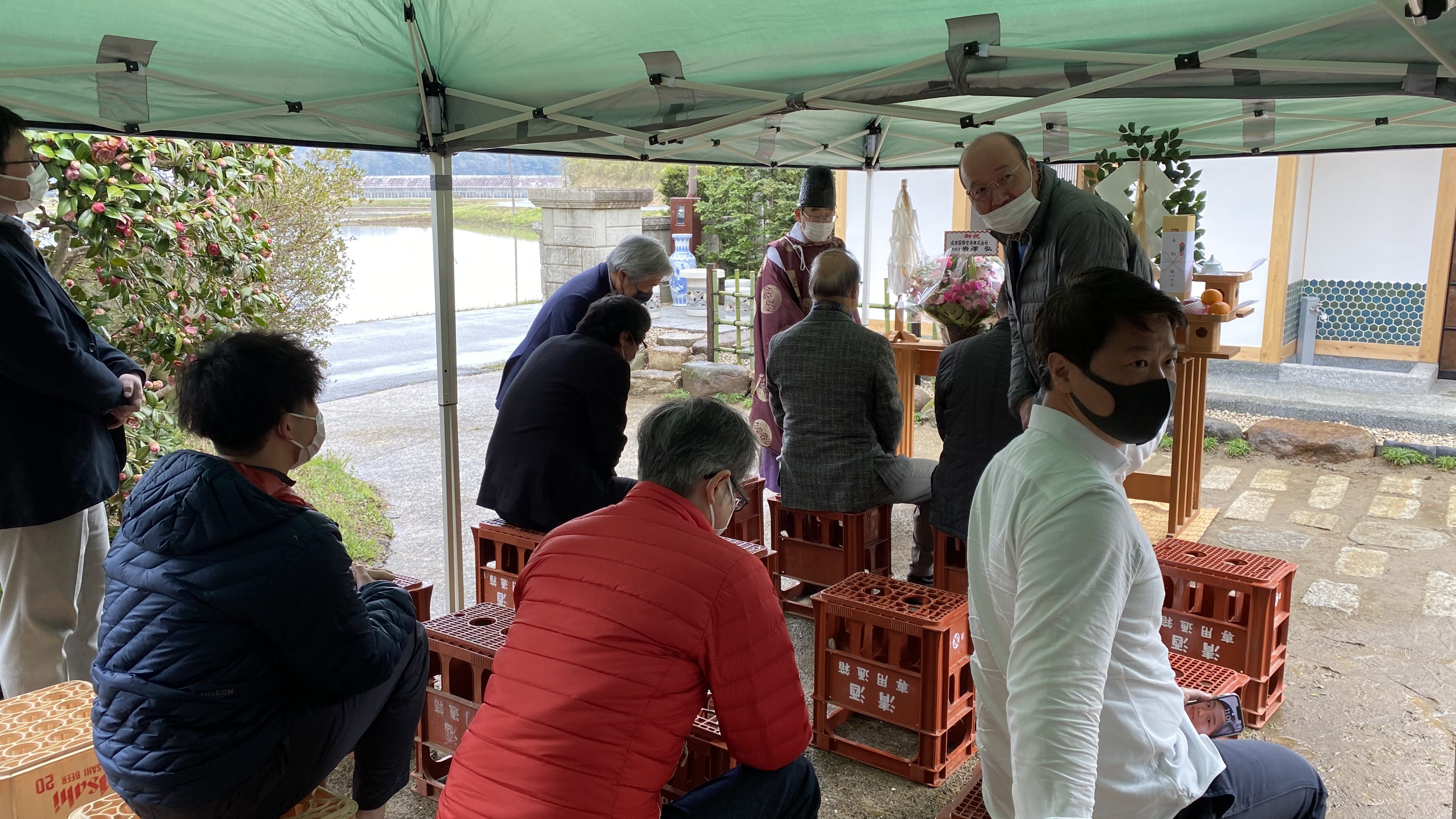 「発酵の里」として広く親しまれている神崎町の和風建築を使った里山文化体験型の宿泊施設「椿house」の公衆トイレが工事を完了、4月3日に「奉尿事始め式」と銘打ち関係者を招いた神事が行われた。