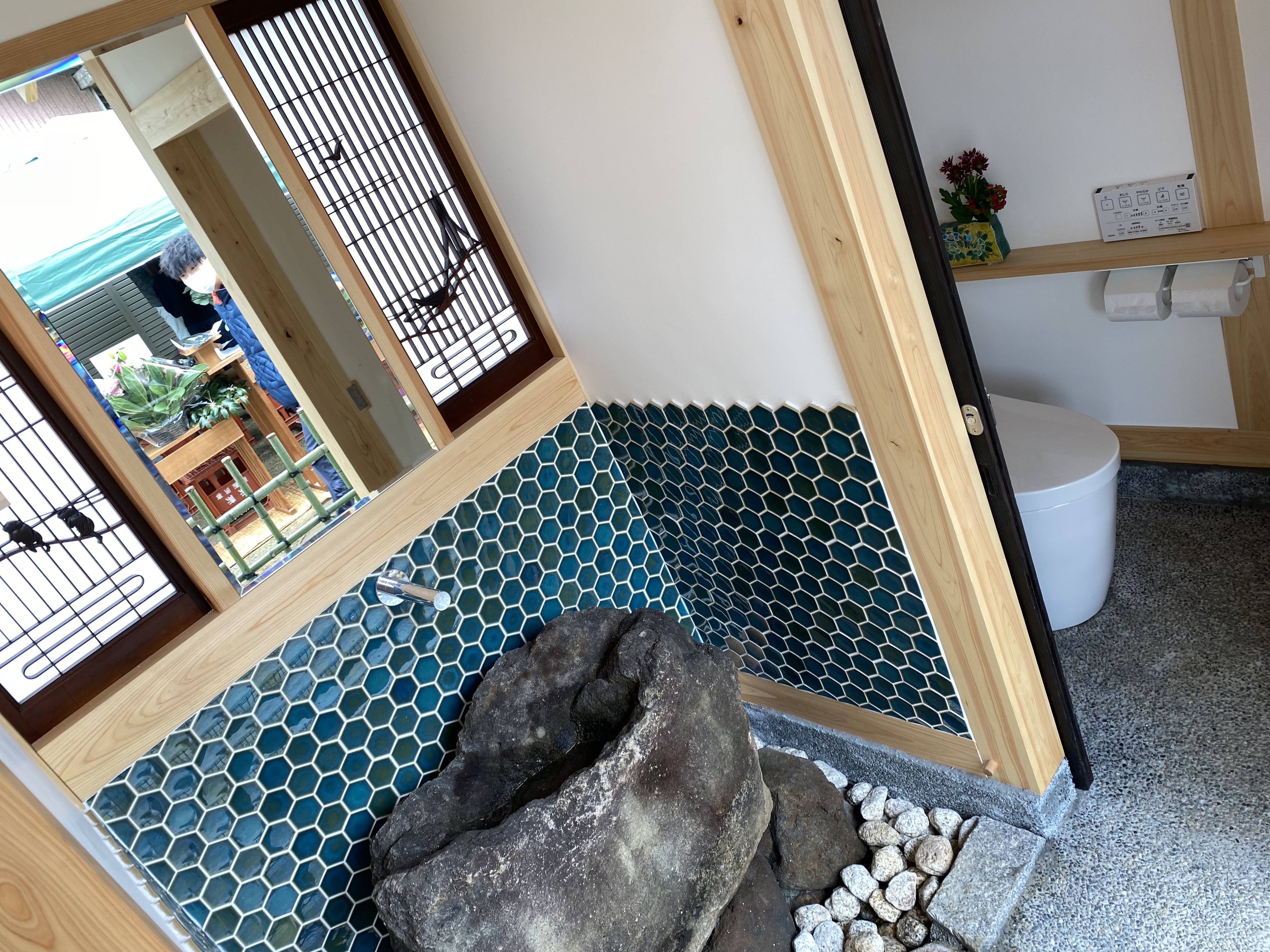 椿さんは、日本建築を専門とした一級建築士であるとともに茶道家でもある。そのため、「トレイは日本文化における最大の『おもてなし』の場」という考えに基づき、こちらのトイレは随所に細かい趣向を凝らした建物になっている。