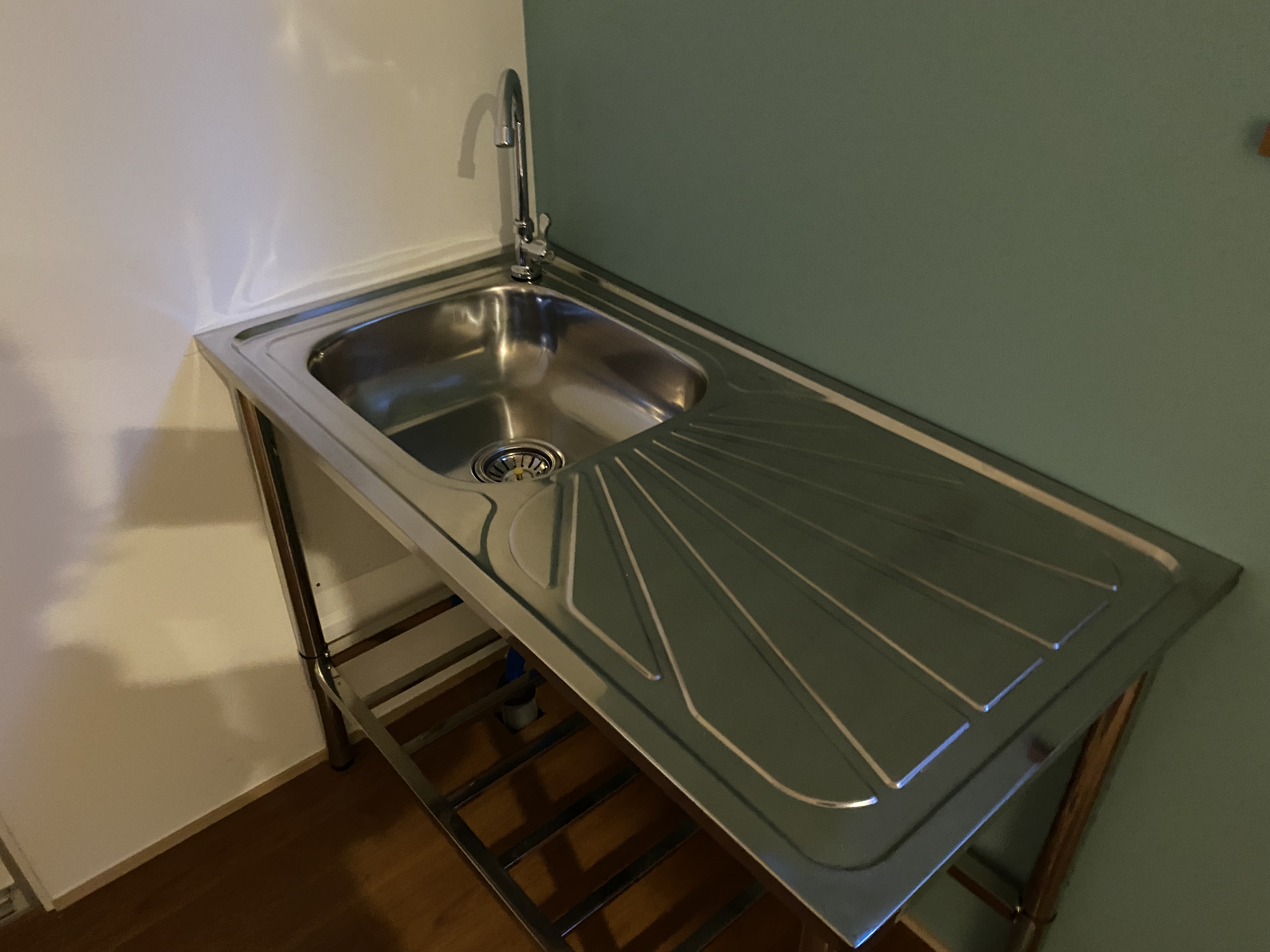 1階部分には作業スペースや打ち合わせスペースらしき場所も設けられ、キッチンやトイレ、風呂などの水回りももちろん完備。