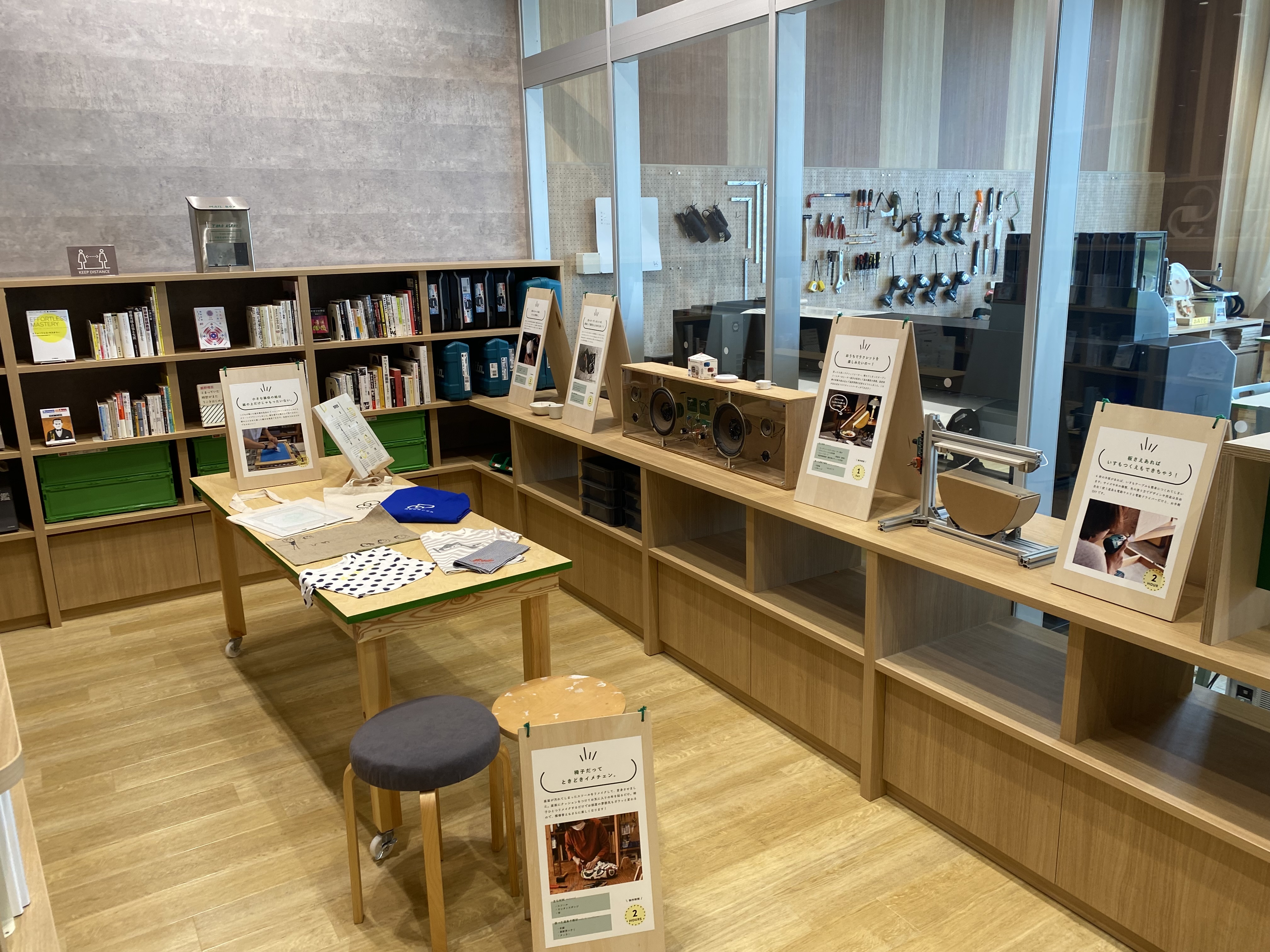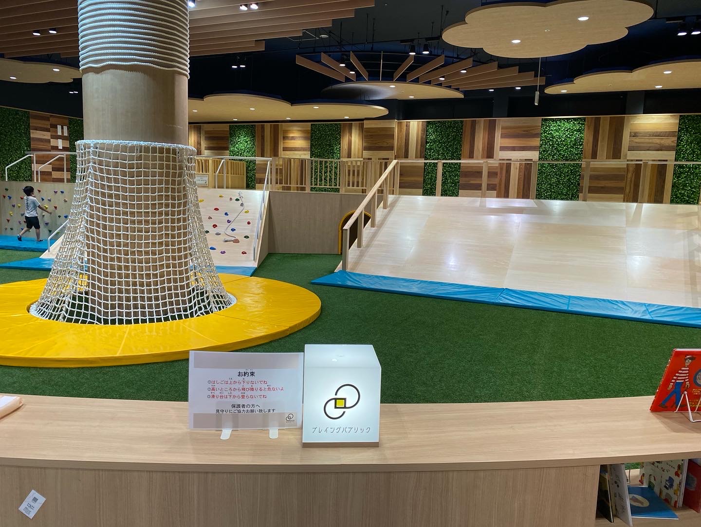 流行の本や昔話題になった本を自由に閲覧できる「ラーニングパブリック」、「自分では購入しないけど気になってしまう」という本を集めている「グローイングパブリック」、ボルダリングやすべり台設置の「プレイングパブリック」、ちょっとした講演会や交流会を開催できる「ミライパブリック」に加え、それらを利用する子育て世代が無料で利用できる「ベビーキャンプ」からパブリックスペースが形成されている。