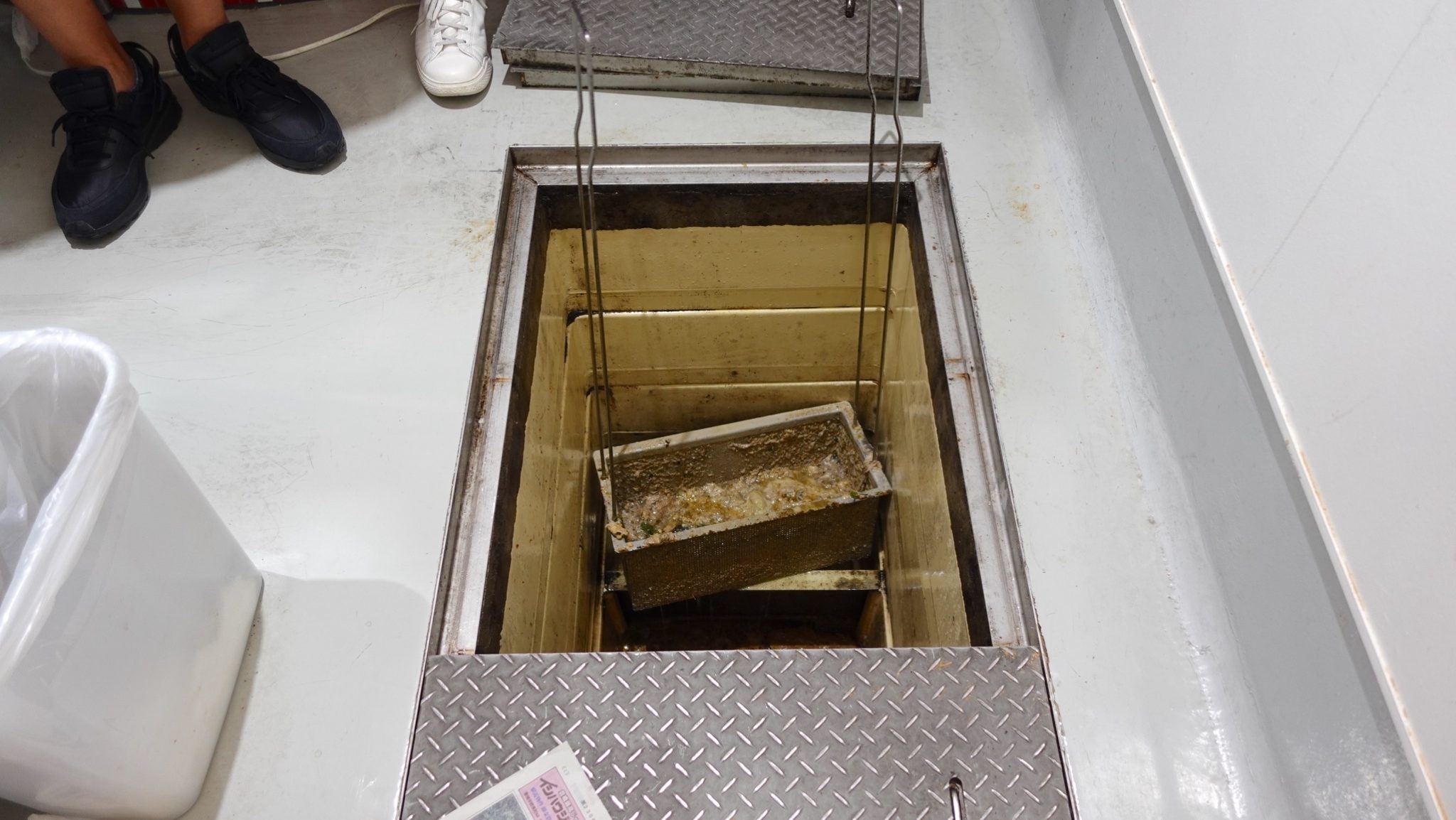 油ものなどをそのまま排水に流してしまうと水質汚染の原因になってしまうので排水に流れないようにためておく設備で、飲食店やコンビニ経営者など「飲食に関わる人々」から最も恐れられている仕事の一つと言っても過言ではない恐怖のワードいわゆる「グリスト」です。