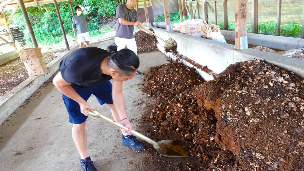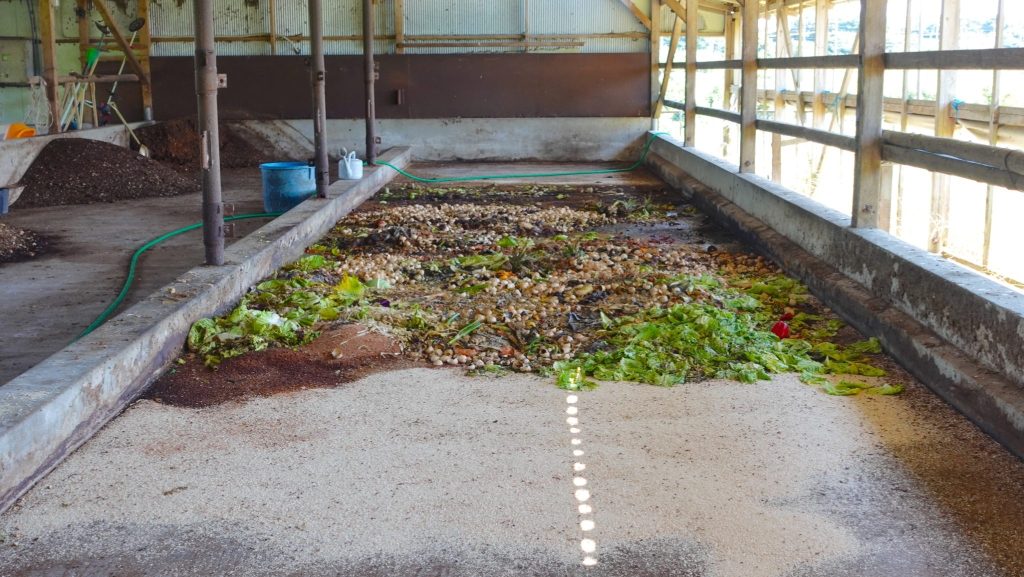 当初、野菜くずも一緒に堆肥にしてしまおうと考えていたそうですが、水分が多すぎると「腐敗する」原因になることから最近は畑で天日に当てて乾かし適度な乾燥状態になったら畑に練り込むそうです。