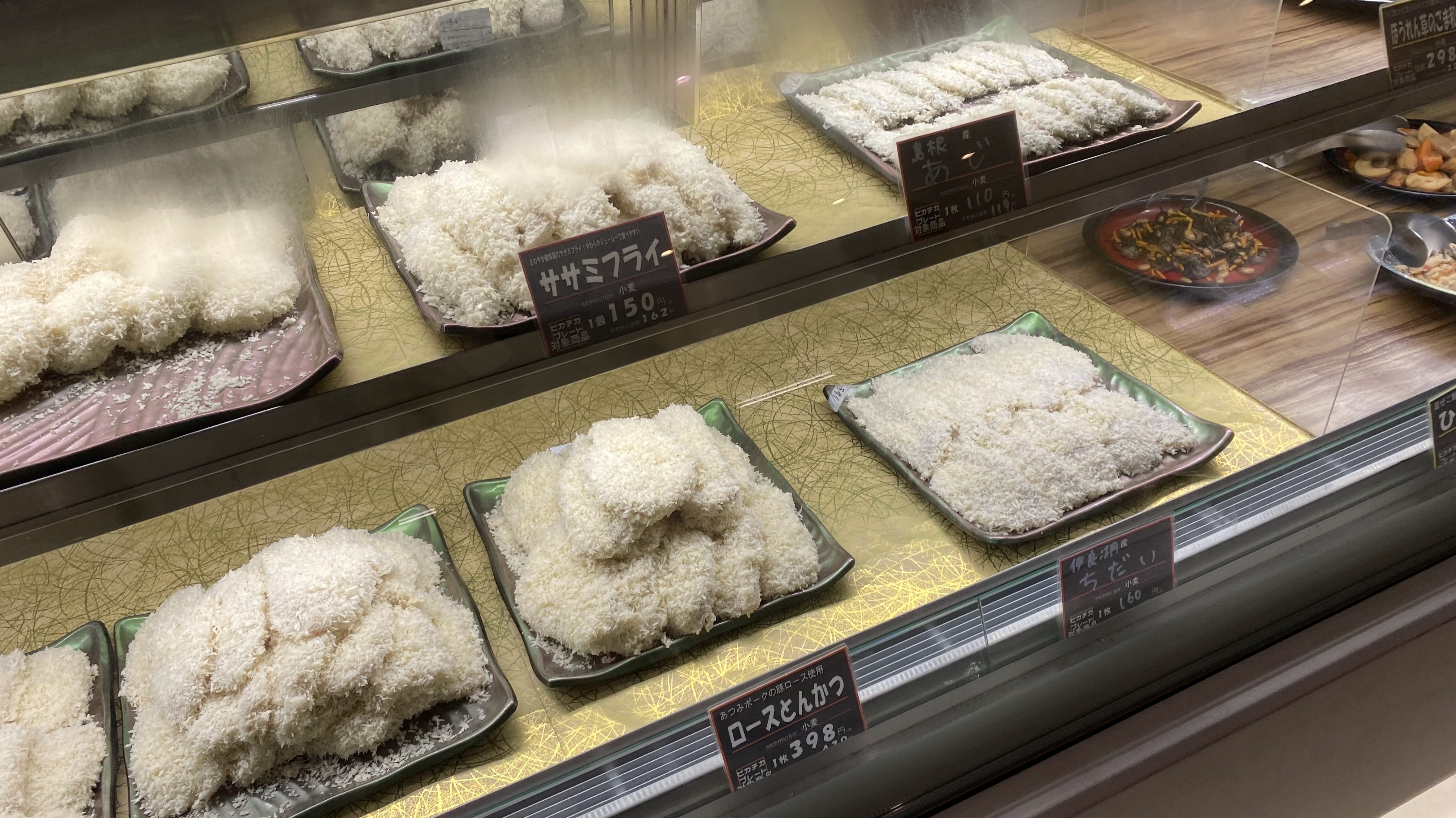 ビオ・あつみエピスリーが持るもう一つ特徴が弁当や総菜のコーナー。惣菜は、注文を受けてから揚げるスタイル。弁当も総菜も購入したら店舗の中2階にあるテラスのイートインスペースで食べることができる。
